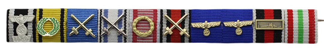 - Medallas y condecoraciones extranjeras (Austria, Hungría, Bulgaria, Rumanía, España, Italia, incluida la medalla denominada «AfrikaKorps», Finlandia).